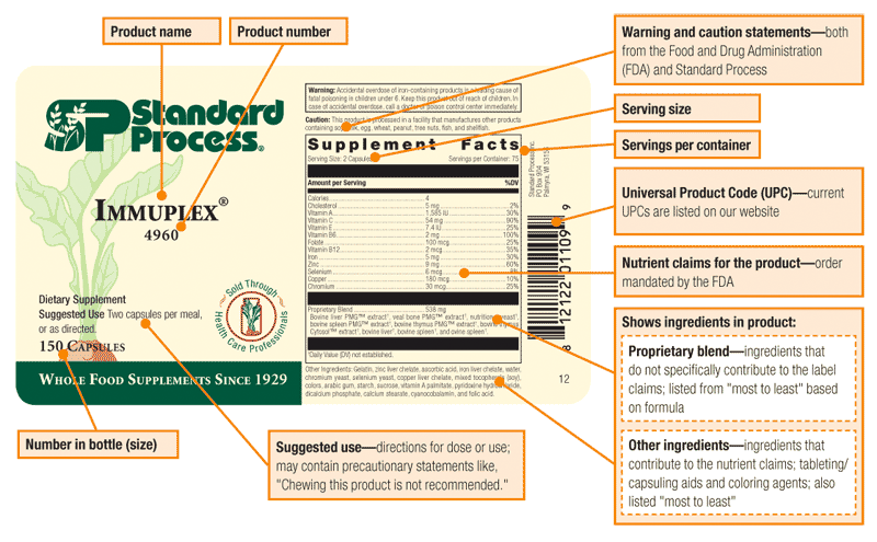 Standard Process products are thought to work synergistically and support multiple aspects of health. In some cases, combined products can result in very high levels of certain vitamins or minerals. Where warranted, guidance is provided for individual products on the label and in this catalog via warnings and cautions. Additional information about vitamin and mineral levels is provided through the “daily values” reported on the label. These values, set by the Food and Drug Administration, indicate how much of the recommended daily consumption of the nutrient is found in a serving. Several excellent resources detailing vitamin/mineral action and current knowledge regarding recommended levels are available online.